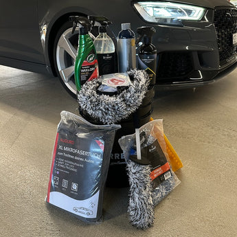 Komplettes Autopflege Set: Alles für die gründliche Autowäsche – von Wascheimer und Autoshampoo bis zur Nassversiegelung.
