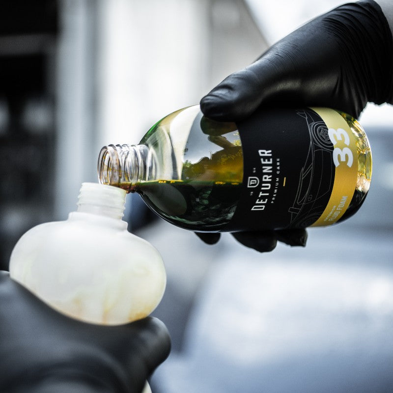 Der Deturner Aktivschaum Vorreiniger sorgt bei der Vorwäsche für eine kraftvolle und zugleich materialschonende Reinigung von Autolack und andere Fahrzeugoberflächen. Hartnäckige Verschmutzungen wie Strassenschmutz, Staub und Ablagerungen werden effektiv aufgeweicht, wodurch die anschliessende Fahrzeugwäsche deutlich erleichtert wird. Die pH-neutrale Aktivschaum-Formel haftet mehrere Minuten auf der Oberfläche, schützt bestehende Versiegelungen und minimiert das Risiko von Kratzern.