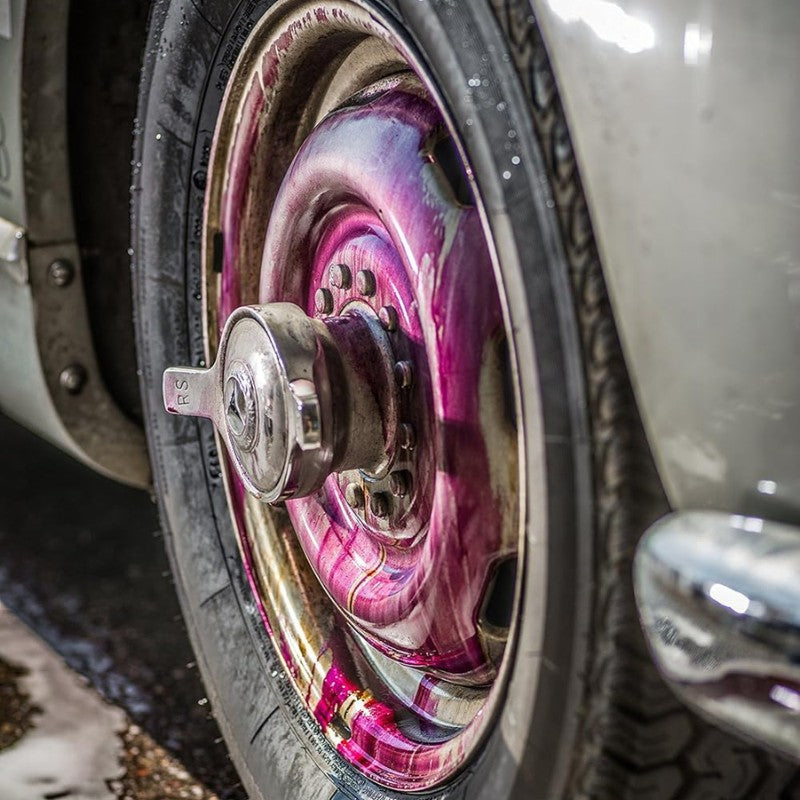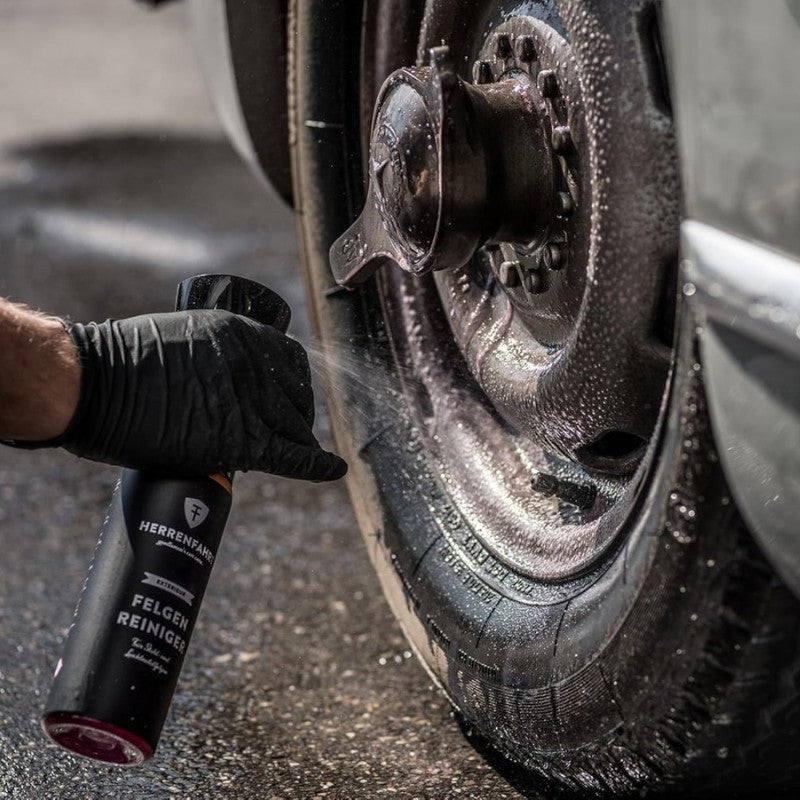 Schonende Felgenreinigung: pH-neutraler Reiniger entfernt Schmutz ohne empfindliche Oberflächen anzugreifen.