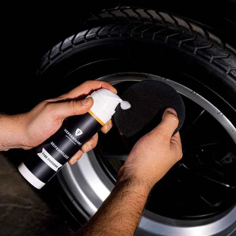 Seidenmattes Reifenfinish: Frischt die Reifen sichtbar auf ohne speckigen Glanz oder Rückstände.